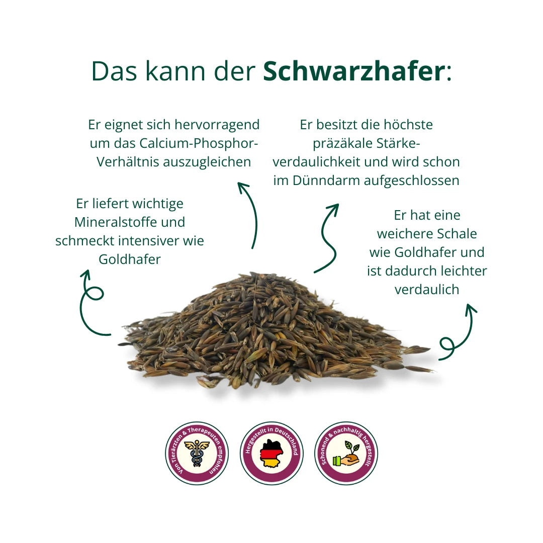 Our organic black oats are distinguished by their particularly soft husk, making them easier to digest for many horses — ideal even for “stomach-sensitive” horses. Their slightly stronger flavor often makes them especially palatable.