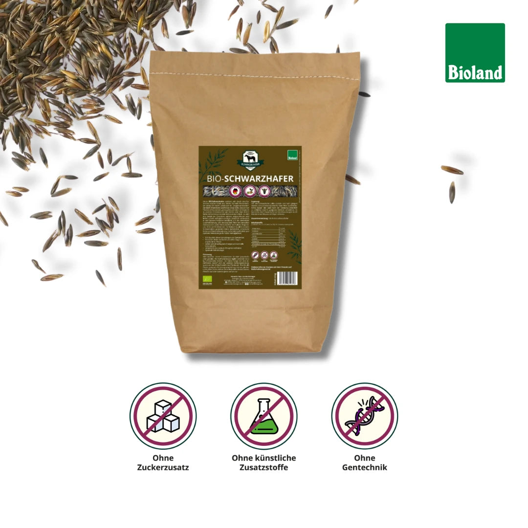 The Bioland organic quality of our black oats guarantees no pesticides, gentle harvesting and warm-air drying, a high diversity of nutrients, and optimal microbiological quality for excellent digestibility.