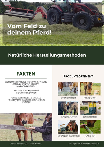 Unsere Grünland- und Ackerflächen pflegen wir mit größter Sorgfalt. Seit mehreren Jahren arbeiten wir nach dem PLOCHER®-Konzept, welches den Boden unabhängig von chemischen Düngemitteln und Pflanzenschutzmitteln stärkt. Darüber hinaus düngen wir unsere Flächen mit Gülle, welche aufbereitet wird. Dies erfolgt in unserer Biogasanlage, in der ein Großteil des Methans entzogen wird und zur Energiegewinnung verwendet werden kann. Hier findet schon während der Lagerung die Umwandlung in ein hochwertiges „Rotteprodukt“ statt. Dadurch ist unsere Gülle fast geruchsneutral und schädigt weder Boden noch Grundwasser, sondern hilft das Bodenleben anzuregen und mit wichtigen Nährstoffen zu versorgen. Vor Erntebeginn überprüfen wir die Flächen mit Drohnen, um sicherzustellen, dass sich keine Wildtiere in den hohen Gräsern verstecken. Zusammen mit anderen Landwirten haben wir die Organisation „Aktion Rehkitzrettung Immendingen e.V.“ ins Leben gerufen. Das Gras wird mit Hochschnittkufen und reduzierter Drehzahl der Mäh-Werkzeuge auf einer Schnitthöhe von ca. 10-12cm geerntet. Dadurch werden kaum Erde und Sand beim Mähen aufgewirbelt und das Schnittgut bleibt sauber. Auf der entsprechend hohen Grasnarbe kann das Erntegut locker und luftig zum Trocknen liegen bleiben.