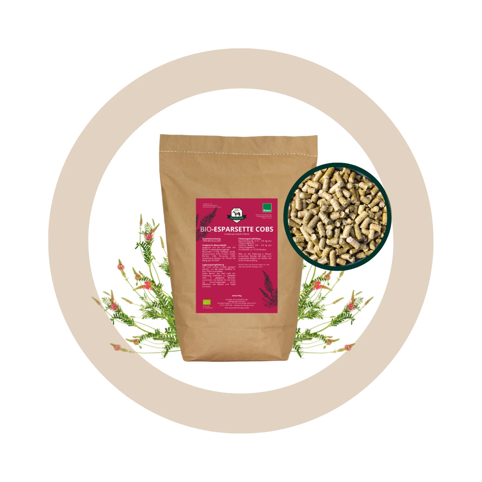 Unsere BIO-Esparsette-Cobs bestehen aus der gesamten Esparsettepflanze. Sie wird schonend geerntet und anschließend wird das Pflanzenmaterial warmluft-getrocknet und zu Cobs verarbeitet. Während der Verarbeitung bleiben die natürlichen Inhaltsstoffe der Pflanze weitgehend erhalten.