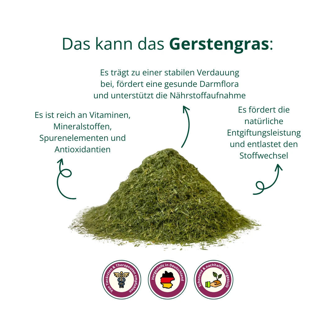 Gerstengras eignet sich sowohl für eine zeitlich begrenzte, gezielte Ergänzung als auch zur langfristigen Integration in die tägliche Ration.