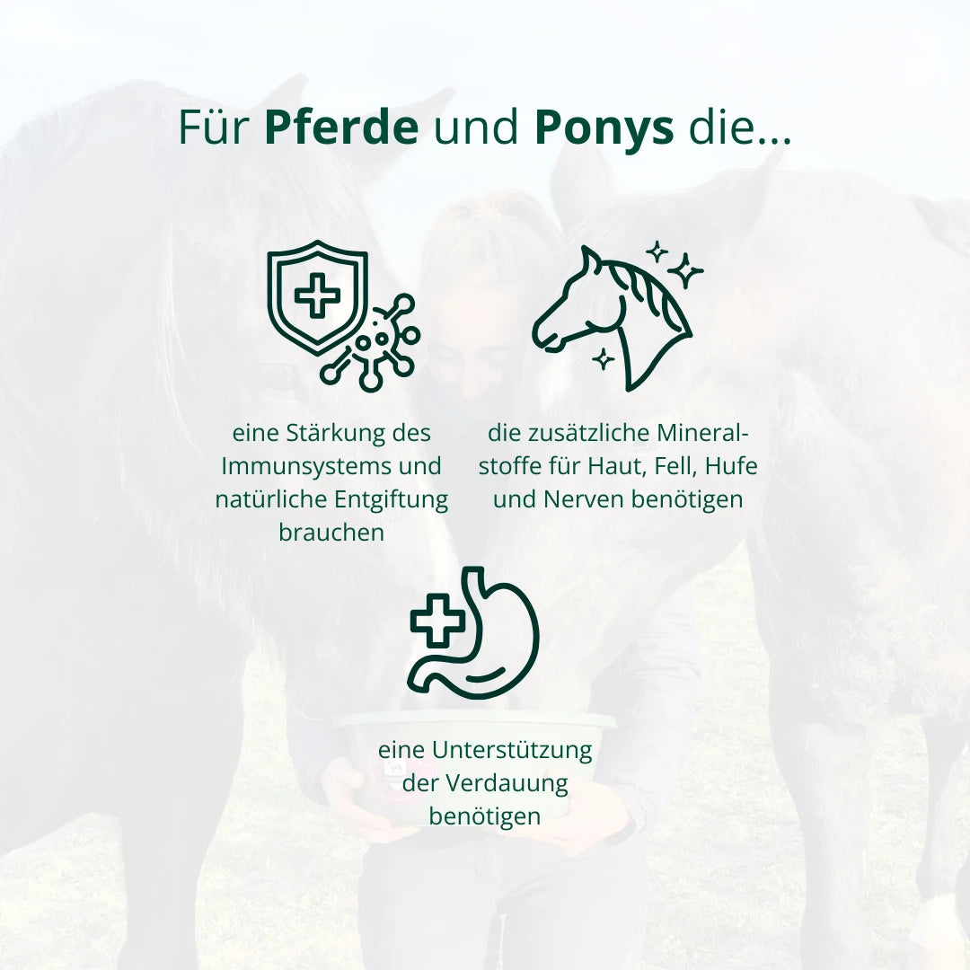 Dank seines hohen Fasergehalts trägt Gerstengras zu einer stabilen Verdauung bei, fördert eine gesunde Darmflora und unterstützt die Nährstoffaufnahme. Gleichzeitig kann die feine Kombination an Mikronährstoffen das Herz-Kreislauf-System stärken und so das allgemeine Wohlbefinden des Pferdes verbessern.