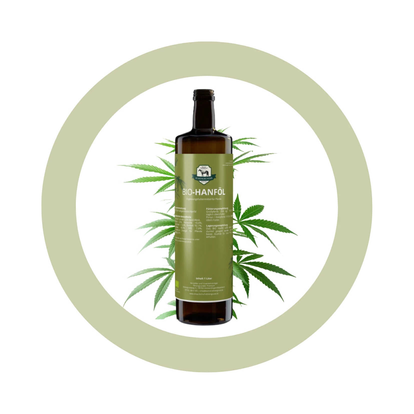 Unser Elmengrunder Premium BIO-Hanföl wird aus Hanfsamen aus kontrolliert biologischem Anbau durch Kaltpressung gewonnen. Das Öl enthält natürliche pflanzliche Inhaltsstoffe, darunter Omega-3- und Omega-6-Fettsäuren, Antioxidantien und Vitamine und kann als ergänzendes Futtermittel in die tägliche Ration aufgenommen werden.