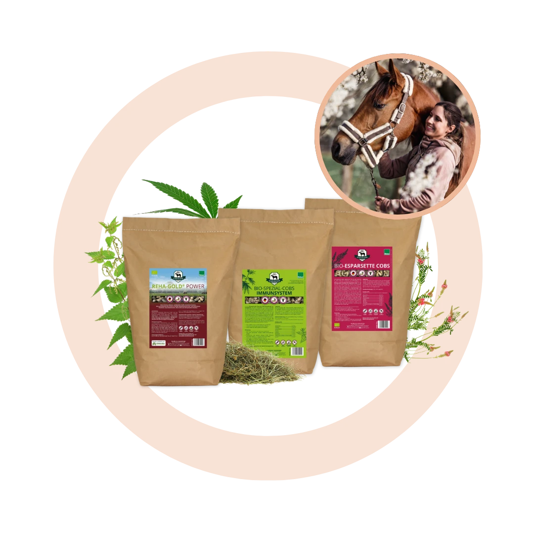 In diesem Bundle erhältst du 4kg Reha-Gold "Power", 5kg Spezial-Cobs "Immunsystem" und 5kg Esparsette-Cobs