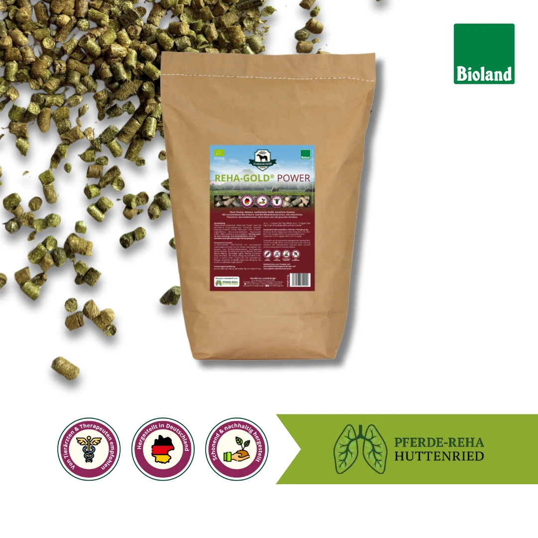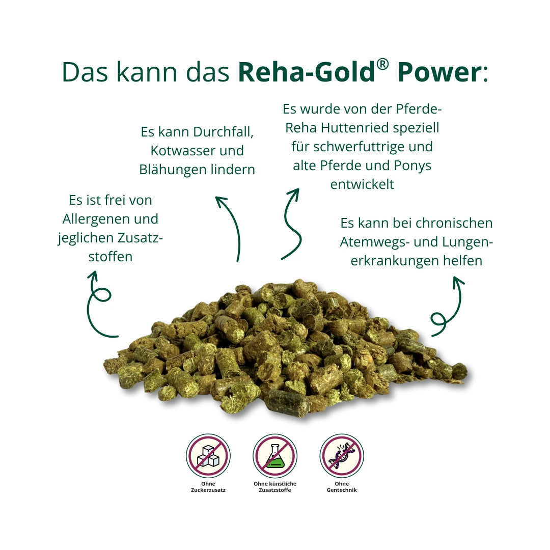Reha-Gold® „Power“ ist das einzige biologische zusammengesetzte Pferdefutter was die Genesungszeit Ihres erkrankten Pferdes nachweislich bedeutend verkürzen kann.
